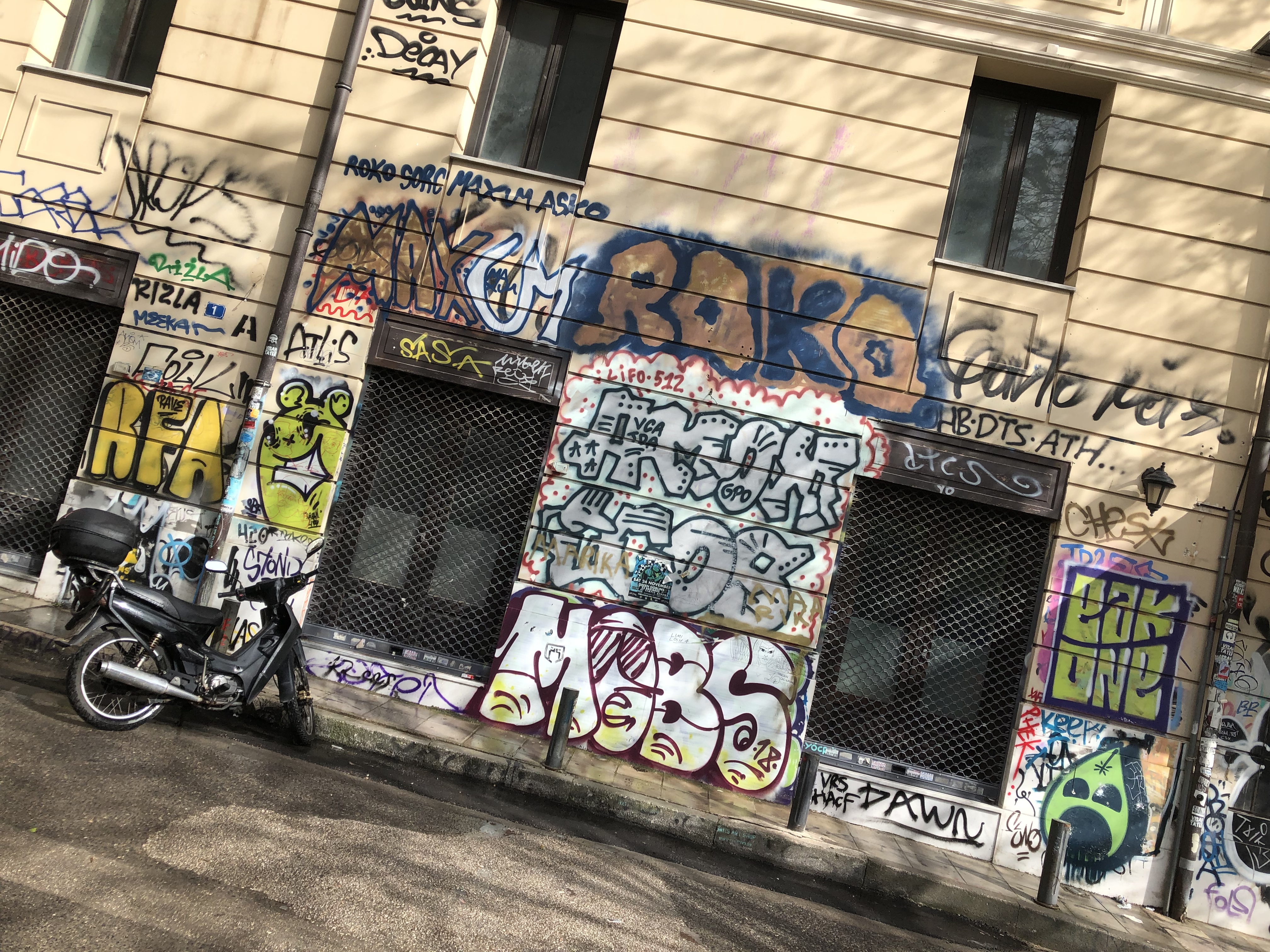 The other thing that shows the unrest of the people is the unfortunate graffiti and tagging that is on almost every building in the Athens city centre. I read that this has been going on since the eighties, much of the graffiti is political some not. The only buildings that appear to escape the spray can are the churches.