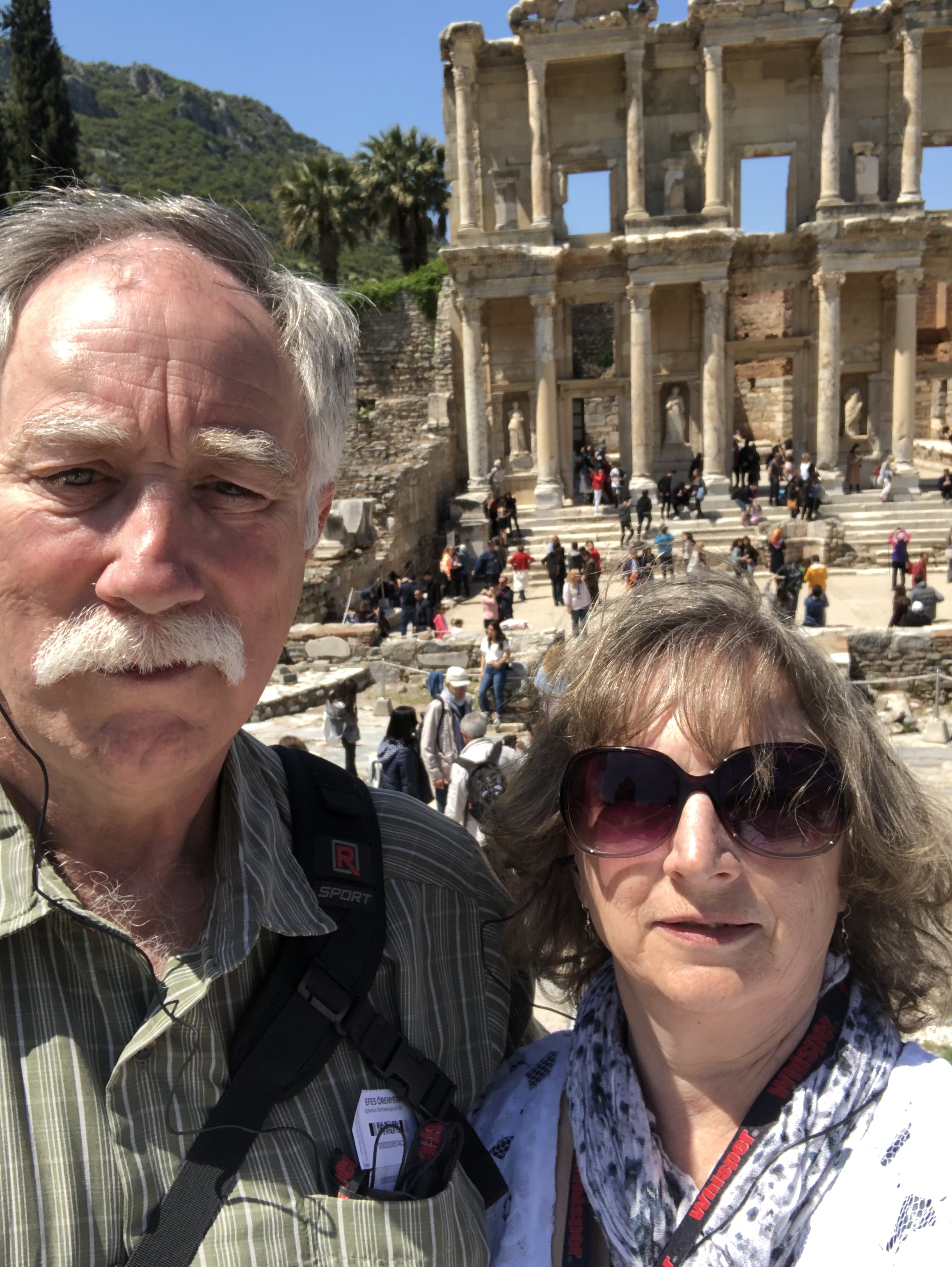 Our last place to visit was not an island. Turkey is 95% in Asia and 5% in Europe. Of all our stops this one had me a little worried as Turkey is bordered by Syria, Iran and Iraq. When we came through the port authority building there were guards with machine guns. Boarded on our tour bus were two armed guards, in 2016 there was a coup attempt in Turkey and the cruise ships are only now returning. I took a deep breath and away we went to the city ruins of famous Ephesus. Our tour guide was Turkish and spent time talking about the politics between Greece and Turkey. I have found Greek and Turkish men to have a powerful presence and sense a potential for violence simmering just under the surface. This sense was particularly strong in Turkey.