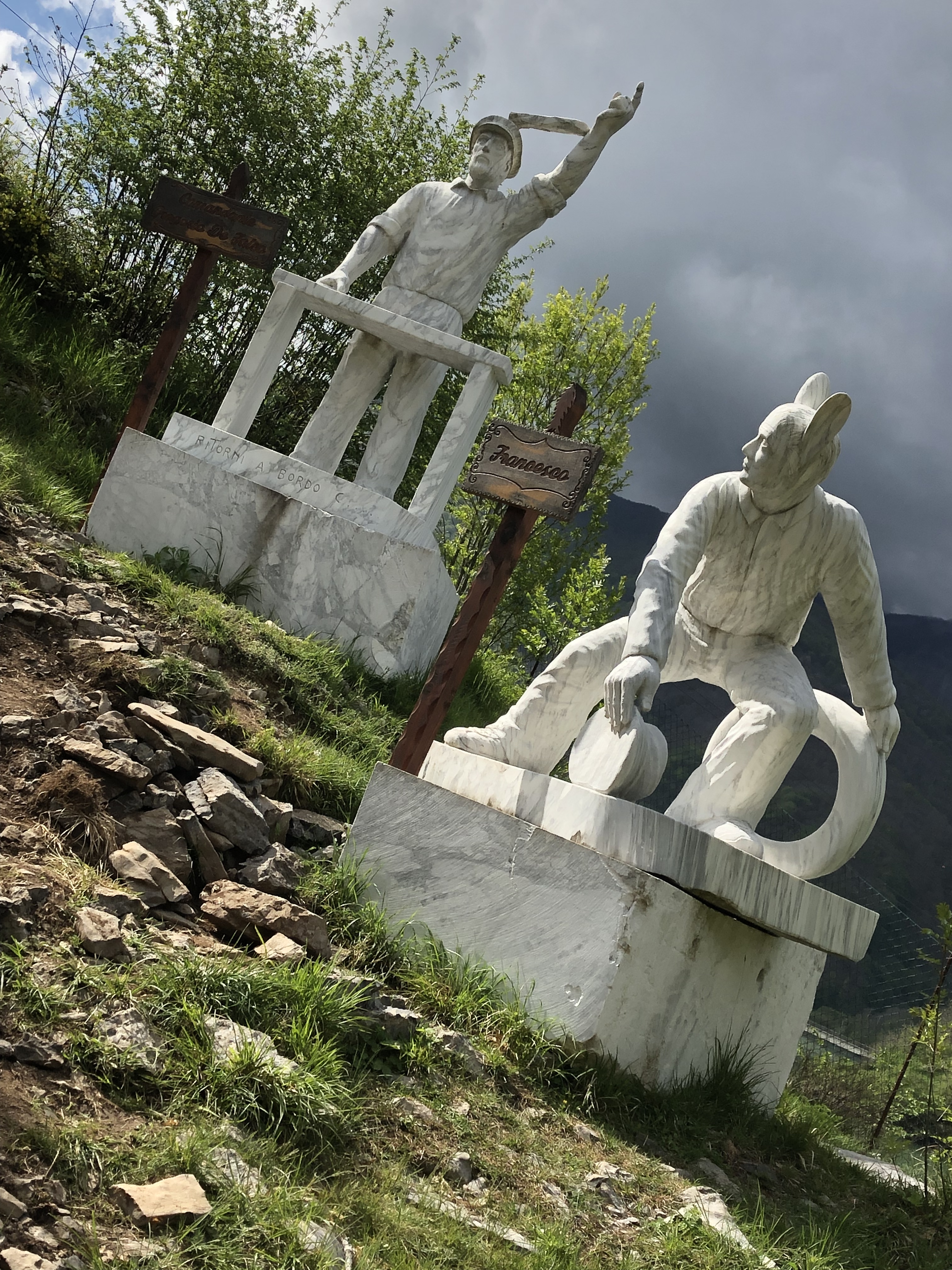 The next section on the village side of the reservoir had an odd collection of marble statues, animals and mythical creatures they were signs but all Italian so no help.