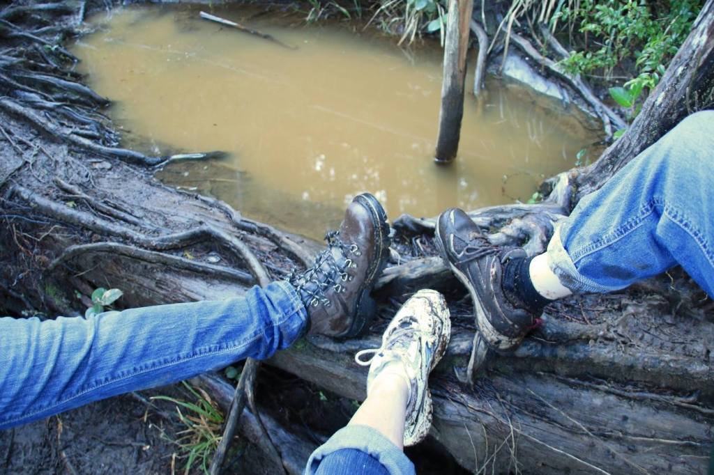 When I look at this photo, the first thought that always comes to my mind is not my cousins or hiking or a crashed plane. No, the first thought is of wet, cold, black, sucking mud.
