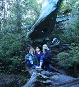 By this time there was only us, sucking mud, and dripping trees on the trail. Finally, we caught the first sight of our destination. The plane hung precariously in the trees, nose down, tail up, surprisingly in tack after 70 years of hanging there. I remember the quiet of the space, and an unexpected feeling of reverence. There were signs not to climb on or in the plane, we read the plaque that told the story of the crash, 12 on board, no lives lost. I was struck by the thought that during the war, the damage to countries throughout Europe was so catastrophic. Being a continent away, our own countryside, our buildings and monuments remained unscathed. And yet here in the middle of the rainforest on the west coast of Vancouver Island, Canada, was a small sampling piece of the destruction from the war.